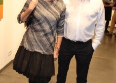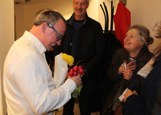 Mākslas mīļotāji sumina Kasparu Zariņu izstādē "Tiešraide". FOTO