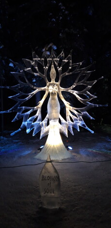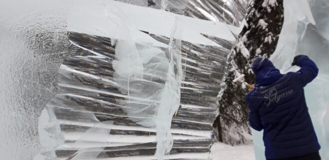 “Aļaskas ledus ir unikāls ar to, ka ir zils, nevis balts. Kad sagriež plānākās detaļās, zilā nokrāsa pazūd. Mākslinieki teic, ka ledus dēļ vien ir vērts šurp braukt. Ledus ir ļoti smags, un bija speciāla tehnika, kas palīdzēja blāķus izcilāt. Traktori strādāja kā juvelieri, es tik saskaņotu darbību vēl nekur nebiju redzējis,” atklāj skulptors.