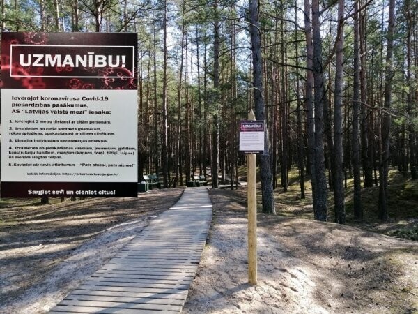 Rūpējoties par meža apmeklētāju drošību LVM tūrisma vietās, ir izvietotas zīmes, kas aicina ievērot valstī noteiktos piesardzības pasākumus.