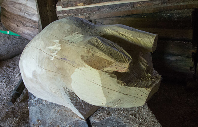Tēlnieka Jāņa Žīmanta darbus šīs vasaras izskaņā bija iespējams aplūkot Bernātos, kur viesu nama “Sīpoli” īpašnieks, vēsturnieks Visvaldis Vecvagars ar tiem atklāja savu nelielo izstāžu zālīti. Arī liepājnieki zina, kā un ko kokā grebj Žīmants, taču lielākie noņēmēji ir brāļi lietuvieši, kuri viņa Rucavas sētā ieripina daudz biežāk. Žīmants saka, ka lietuvieši ir ar nazīti rokā piedzimuši un viņiem par koka lietām ir lielāka interese un lielāka nojēga arīdzan. Un lietuviešu šaipusē ir daudz – Latvijas pirmās brīvvalsts laikā zvejnieku ciemā Papē, kas vienlaikus ir arī tautas arhitektūras piemineklis, mitušas 28 latviešu ģimenes, tagad labi ja divas.