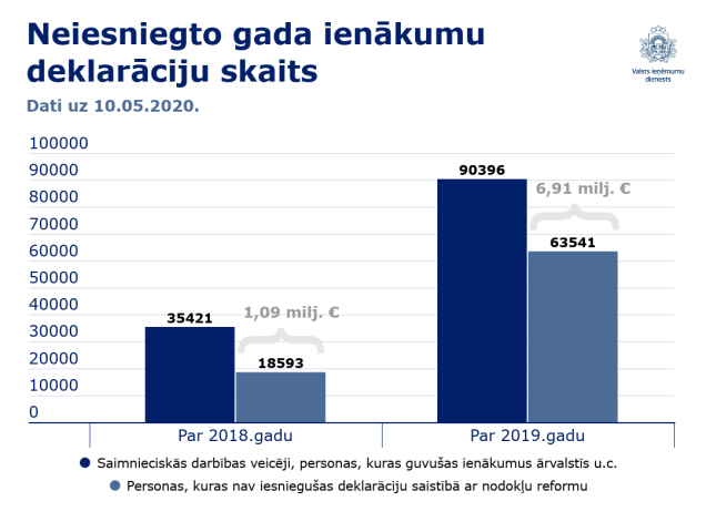 Savukārt, ja personas kopējie gada ienākumi 2019. gadā pārsniedz 62 800 eiro, deklarācija obligāti jāiesniedz līdz šī gada 1. jūlijam ieskaitot.
