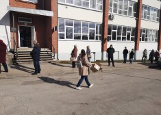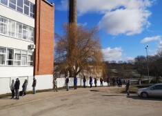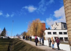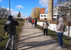 Rindas pēc dezinfekcijas līdzekļiem pie ražotnes "Spodrība" Dobelē