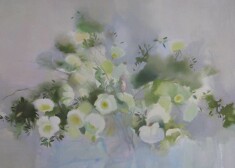 Vitas Mercas daiļradē dominē gaišie pasteļtoņi. Tomēr izstādē aplūkojamas arī dažas “tumšās” gleznas, kurās ziedu kompozīcijas atainotas uz tumša, piesātināta fona, savā ekspresijā līdzinoties holandiešu vecmeistaru klusajām dabām. Līdztekus ziedu kompozīcijām, izstādē varēs redzēt arī pavasara tēmai veltītas ainavas.