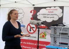Protesta dalībnieki norādīja, ka vēlas, lai šajā vietā tiktu izveidots Eiropas līmenim atbilstošu divlīmeņu krustojums - tunelis zem šosejas.