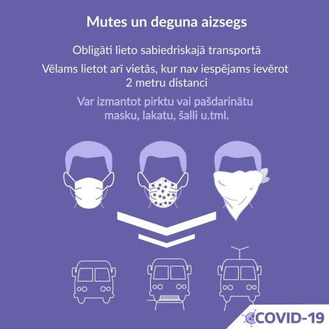 Ņemot vērā, ka sabiedriskajā transportlīdzeklī nav iespējams garantēt divu metru distances ievērošanu, transportlīdzeklī arī turpmāk nepieciešams lietot mutes un deguna aizsegus.