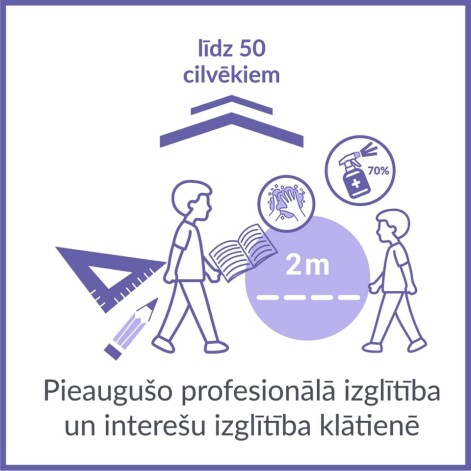 Savukārt pieaugušo profesionālās tālākizglītības, profesionālās pilnveides un pieaugušo neformālās izglītības programmās līdz 31.augustam maksimālais personu skaits grupā ir 50.