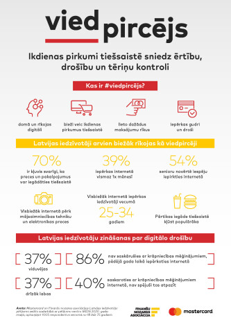 Ikdienas pirkumi tiešsaistē un norēķini ar maksājumu kartēm un citiem maksājumu rīkiem sniedz ērtību, drošību un tēriņu kontroli. Jaunākie pētījuma dati liecina, ka iedzīvotāji biežāk iepērkas internetā, vienlaikus e-komercijai Latvijā vēl ir liels izaugsmes potenciāls. Vairāk nekā trešdaļa respondentu (39%) internetā iepērkas vismaz reizi mēnesī, un teju 70 % Latvijas iedzīvotāju ir kļuvis svarīgi, ka uzņēmumu preces un pakalpojumus var iegādāties tiešsaistē, liecina Mastercard un Finanšu nozares asociācijas maijā veiktais Latvijas iedzīvotāju pētījums. Aptauja veikta informatīvās kampaņas #viedpircējs ietvaros, kas Latvijā tiek īstenota līdz augustam.