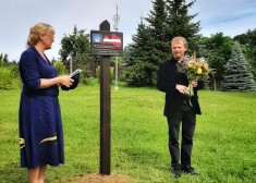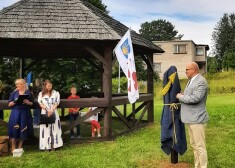 FOTO: atklāj robežas stabiņu Santjago ceļa sākumam Latvijā