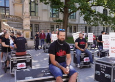 Šodien pie Kultūras ministrijas ieradušies vairāk nekā 200 Latvijas pasākumu nozares tehniskā nodrošinājuma uzņēmumu pārstāvji, lai protestētu pret atbalsta nenodrošināšanu nozares darbiniekiem