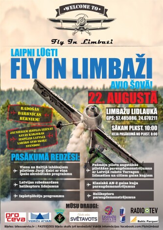 Ar vērienīgu aviācijas šovu sestdien, 22. augustā, plkst. 10:00 Limbažu lidlaukā tiks atklāts aviošovs “Fly in Limbaži”. Tajā piedalīsies 33 lidaparāti, 19 izpletņlēcēji, 7 paraplānisti un būs vērojami Latvijas Valsts robežsardzes aviācijas pārvaldes helikopteru lidojumu paraugdemonstrējumi.