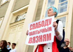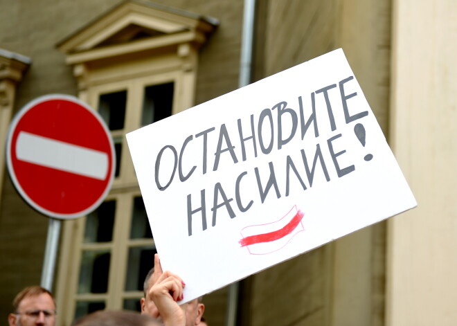 Iepretim Baltkrievijas vēstniecībai notiek pikets, kurā pauž atbalstu Baltkrievijas sabiedrībai, kas iebilst pret prezidenta vēlēšanu rezultātu viltošanu.