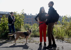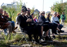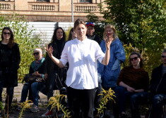 Notiek pasākums, kura laikā prezentē ieceri Sporta pils teritorijā uz laiku ierīkot mazdārziņus un ziedu pļavu.