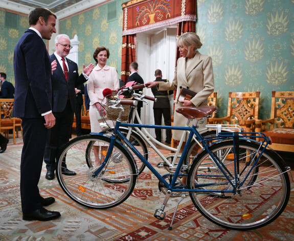 Valsts prezidents Egils Levits Francijas prezidentam Emanuelam Makronam ar kundzi Brižitu Makronu vizītes laikā Latvijā uzdāvinājis divus "Ērenpreiss" velosipēdus.