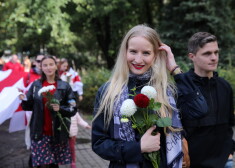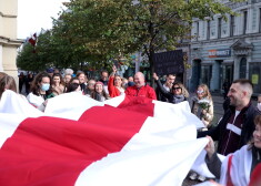 Rīgā norit gājiens Baltkrievijas sieviešu atbalstam