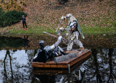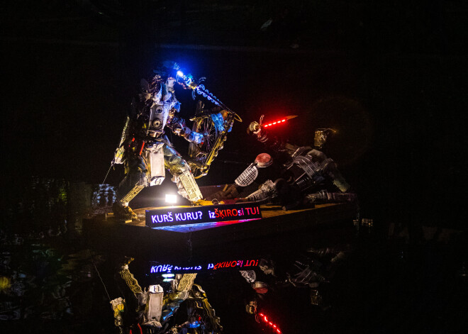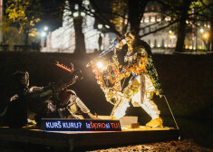 Sociālajos tīklos sacēlusies jūsmošana un diskusijas par Lāčplēsi un Melno bruņinieku, kas valsts svētku laikā parādījies Rīgas kanālā starp Brīvības pieminekli un operas namu. Vides objekts, kur spraigi cīnās Lāčplēsis un Melnais bruņinieks, kas, turklāt, darināts no īpatnējiem, šķiet, miskastē atrastiem materiāliem, piesaista garāmgājēju uzmanību un raisa interesi gan dabā, gan sociālajos tīklos. Turklāt, visu vēl intriģējošāku dara uzraksts uz skulptūras pontona – “KURŠ KURU? izŠĶIROsi TU!”