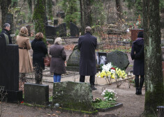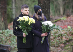FOTO: Leona Krivāna ģimene urnu ar viņa pelniem apbedī Meža kapos