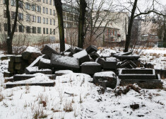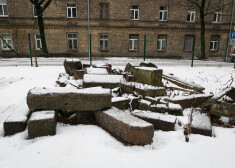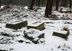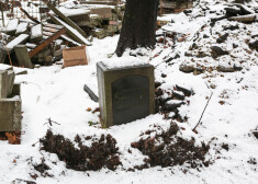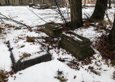 Šobrīd uzsnigušais sniegs paslēpis arī smagās tehnikas iebraukātās riepu sliedes, kurās grimst pa kādai senākai kapu pieminekļu daļai.