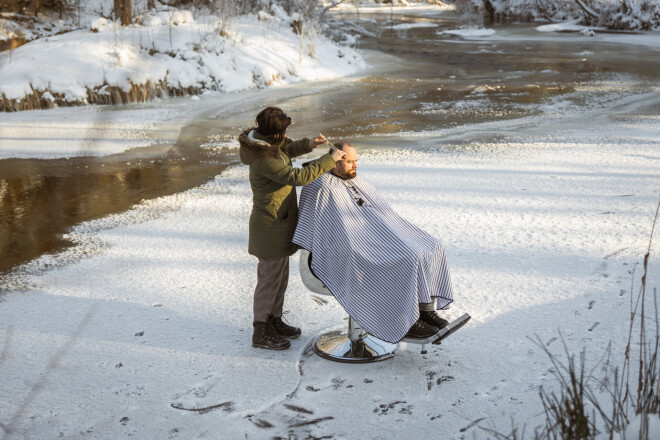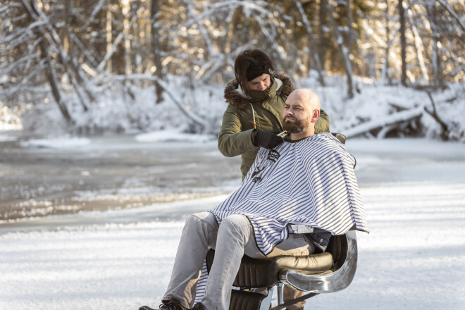 Kā spontāns protests šī brīža liegumam skaistumkopšanas speciālistiem strādāt salonos – tā var raksturot bārddzines Sigitas Norveles piedalīšanos fotosesijā brīvā dabā. Tās laikā viņa savu darbu veica aukstā ziemas rītā meža ielokā.