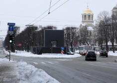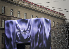 18. janvārī atklātais vides mākslas objekts „Goda vārti" Brīvības bulvāra un Elizabetes ielas krustojumā ir Rīgas veltījums Latvijai jubilejā.
