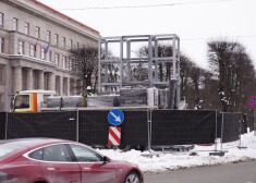 Šajās dienās iepretim Ministru kabineta ēkai Rīgā notiek vides mākslas objekta "Goda vārti" demontāžas darbi.