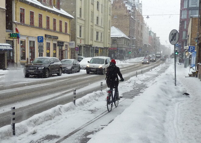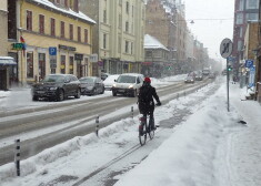 Rīgā ar velosipēdiem braukā arī salā un sniegputenī