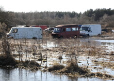 Jelgavas apkārtne ledus iešanas laikā: applūdušās pļavas un tīrumi