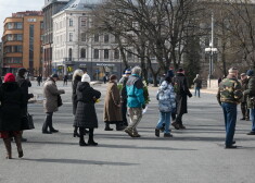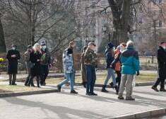 Iepretim tam pulcējās nelielas grupas, cenšoties distancēties un ar sejas aizsargmaskām.