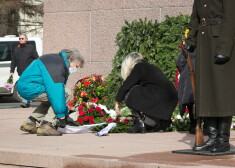 Kā novēroja Jauns.lv, šodien ziedus pie Brīvības pieminekļa cilvēki devās nolikt atsevišķi.
