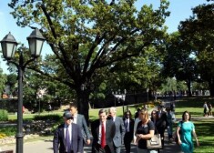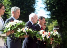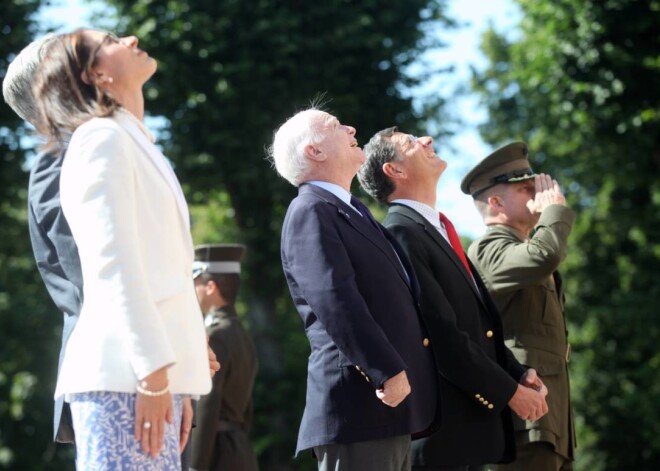 ASV senatori, kas ieradušies uz NATO Stratēģiskās komunikācijas izcilības centra jaunās ēkas atklāšanu un starptautisko konferenci "The Riga StratCom Dialogue: Perception Matters", ceturtdien pēcpusdienā nolika ziedus pie Brīvības pieminekļa. Ceremoniju vēroja daži cilvēki.