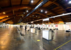 Centrāltirgū izveidotajā masu vakcinācijas punktā ļaudis saņem vakcīnas