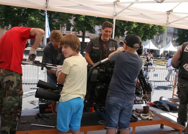 Rīgas svētki: Motociklistu priekšnesums braukājot pa lodi