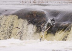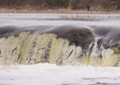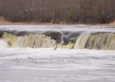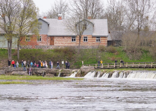 Kuldīdznieki un pilsētas viesi Ventas rumbā vēro vimbu lēkšanu
