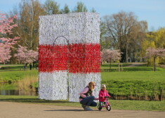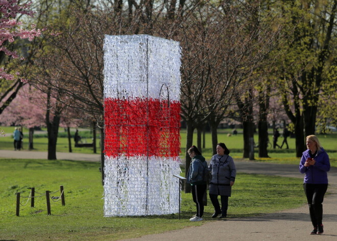 FOTO: "Ilgojoties pēc uzvaras pār Covid-19" - Uzvaras parkā izveido triumfa arkādi