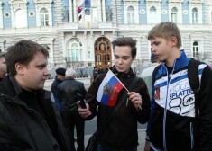 PCTVL aktīvistu Rīgas centrā rīkotais pikets "Krimas atbalstam" 2014.gada 10.martā