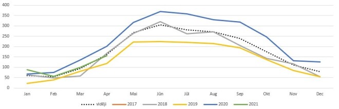 Šogad pirmajos četros mēnešos nozagti jau 402 velosipēdi. Var teikt, ka parasti riteņu zagšanas sezona sākas aprīlī, sasniedzot pīķi maijā un jūnijā. Pērn pavasarī bija ļoti augsta zādzību aktivitāte: maijā vien nozaga 316 velosipēdus, bet jūnijā vēl vairāk - 370 riteņus.