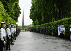 Saeimas delegācija nolika ziedus pie Nezināmā kareivja un Golodomora upuru memoriāliem.