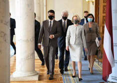 "Ukrainas tauta ir izvēlējusies iet demokrātijas, un eiroatlantiskās integrācijas ceļu. Tā ir izvēle, par kuru jūs esat maksājuši visaugstāko cenu – cilvēku dzīvību. Šī izvēle ir jārespektē, un mēs esam šeit, lai apliecinātu, ka Ukraina var allaž rēķināties ar stingru Latvijas atbalstu," uzsvēra Saeima priekšsēdētāja Ināra Mūrniece (NA), oficiālā vizītē Ukrainā tiekoties ar tās parlamenta priekšsēdētāju Dmitro Razumkovu.