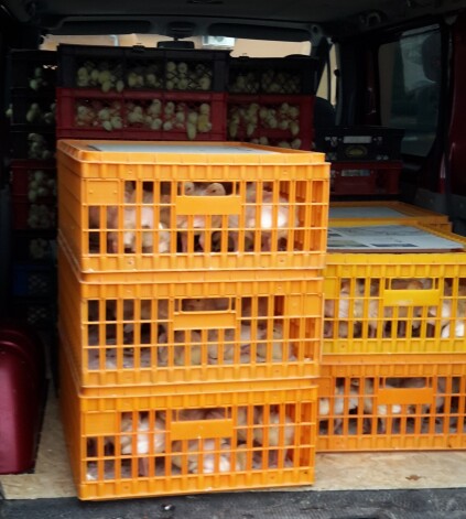 Kopumā kravā bija aptuveni 1 850 dējējvistu un 210 tītaru cāļi.