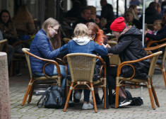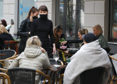 Cilvēki Rīgā steidz pavadīt laiku Covid-19 pandēmijas laikā atvērtajās restorānu terasēs