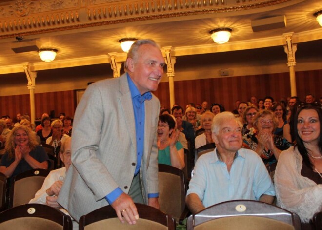 Ar izcilnieku un jubilāru sveikšanu Nacionālā teātra aktieri svin atgriešanos darbā. FOTO