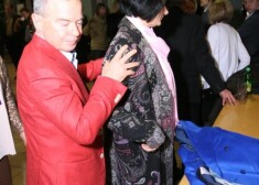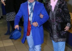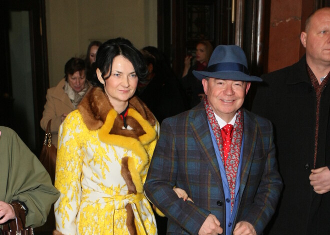 Ventspils mērs Aivars Lembergs ar savu dzīvesbiedri, Ventspils domes izpilddirektora vietnieci Kristīni Krasovsku dziesmu aptaujā "Muzikālā banka 2014" Ventspilī, 2015. ...