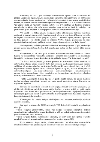 Ir noprotams, ka ar 2022. gadu atsavināt autordarba mantiskās tiesības ar licences līgumu par autoratlīdzību vairs nebūs iespējams – seminārā tika paskaidrots, ka šis darījums jāmaskē kā Uzņēmuma līgums, kurš tiks traktēts kā Darba līgums. Vai tiešām tas ir normāli?" teikts vēstulē.