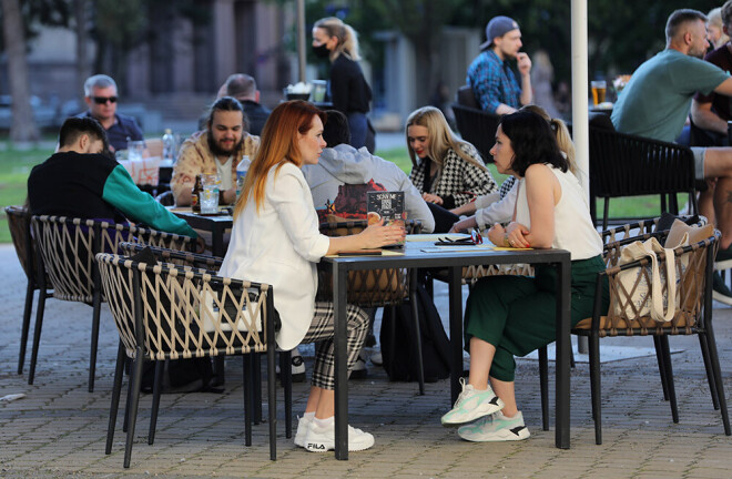 Cilvēki Rīgā steidz pavadīt laiku Covid-19 pandēmijas laikā atvērtajās restorānu terasēs