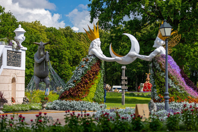 Pakrojas muižā, Lietuvā, slejas lielas skulptūras - jau šajā nedēļas nogalē sākas ziedu festivāls
