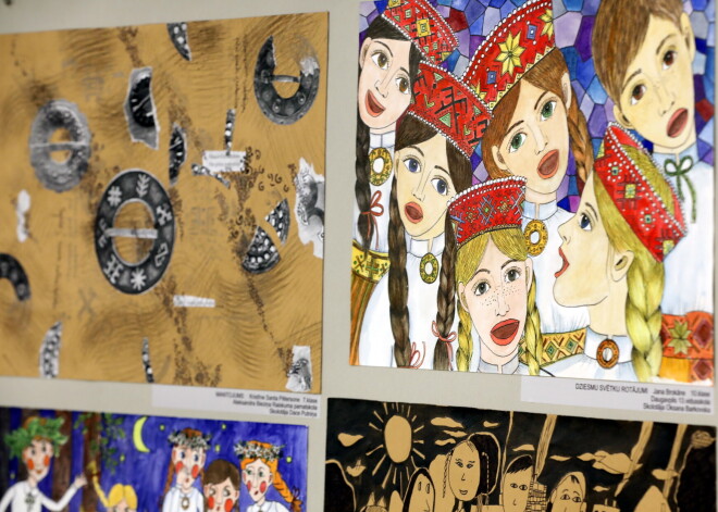 Līdz 15. augustam VEF kultūras pilī skatāma Latvijas skolu jaunatnes dziesmu un deju svētku norišu izstāde "Radi rotājot".