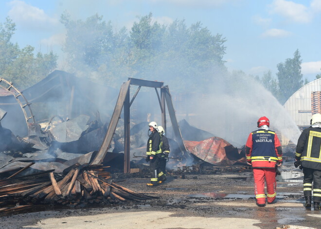 Notikuma vietā dega angārs, kurā izvietota pirts ražotne, kā arī paletes 1250 kvadrātmetru platībā. Tāpat dega liels apjoms kokmateriālu, kā rezultātā radās spēcīgs sadūmojums un augsta temperatūra.