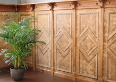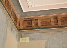 Alūksnes Jaunās pils mūzikas saloni pēc restaurācijas darbiem apmeklētājus priecē ar krāšņiem gleznojumiem, okera ierāmējumu, smalkiem rakstiem rotātām durvīm un grifu gleznojumiem.