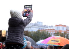 Aldis Gobzems Esplanādē uzrunā cilvēkus