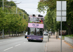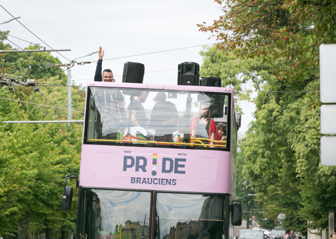 "Baltic Pride 2021" dalībnieki ar autobusu dodas Rīgas ielās