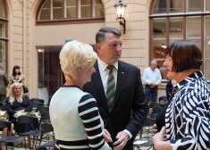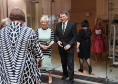 FOTO: mākslas cienītāji bauda itāļu kultūras klātbūtni Rīgas Biržas jubilejas izstādes atklāšanā